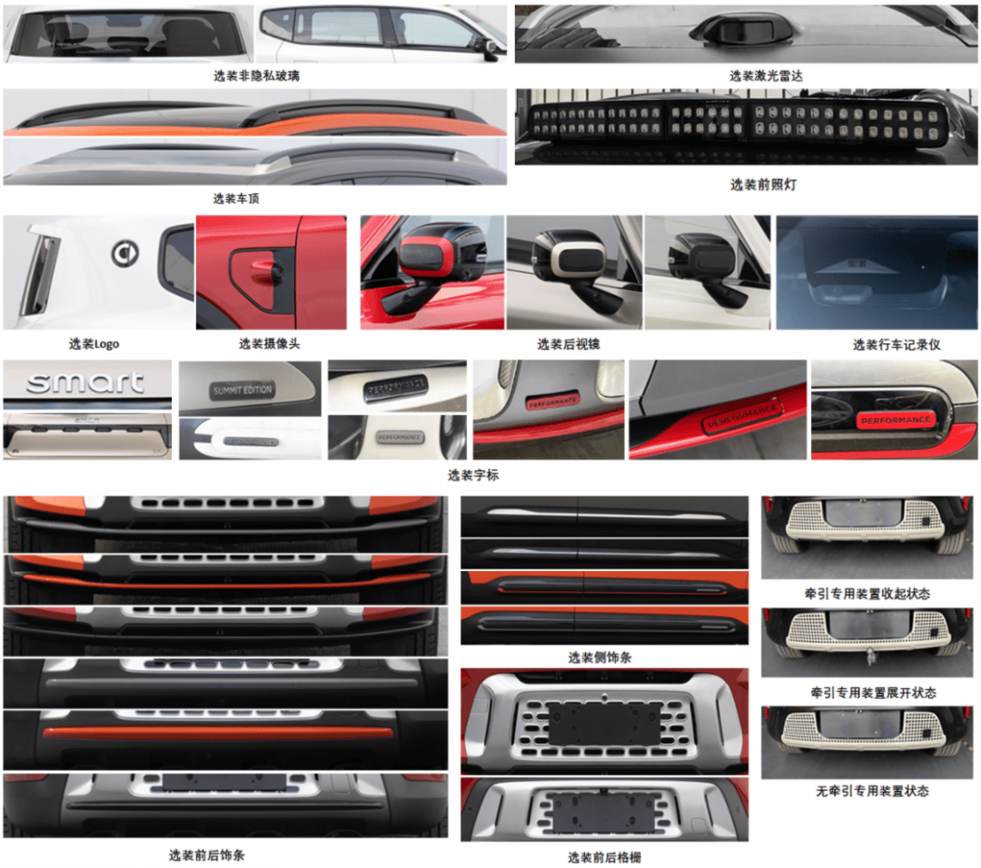 不只是動力選擇多,還有很多其他特色配置都可以挑,而且都挺有個性的。比如非隱私玻璃,想要更通透的視野就可以選它,還有激光雷達,車頂前照燈、攝像頭、行車記錄儀這些實用安全的配置。此外,車身 LOGO 、字標、外觀裝飾條都有不同版本可選,完全可以根據自己的喜好來定製。