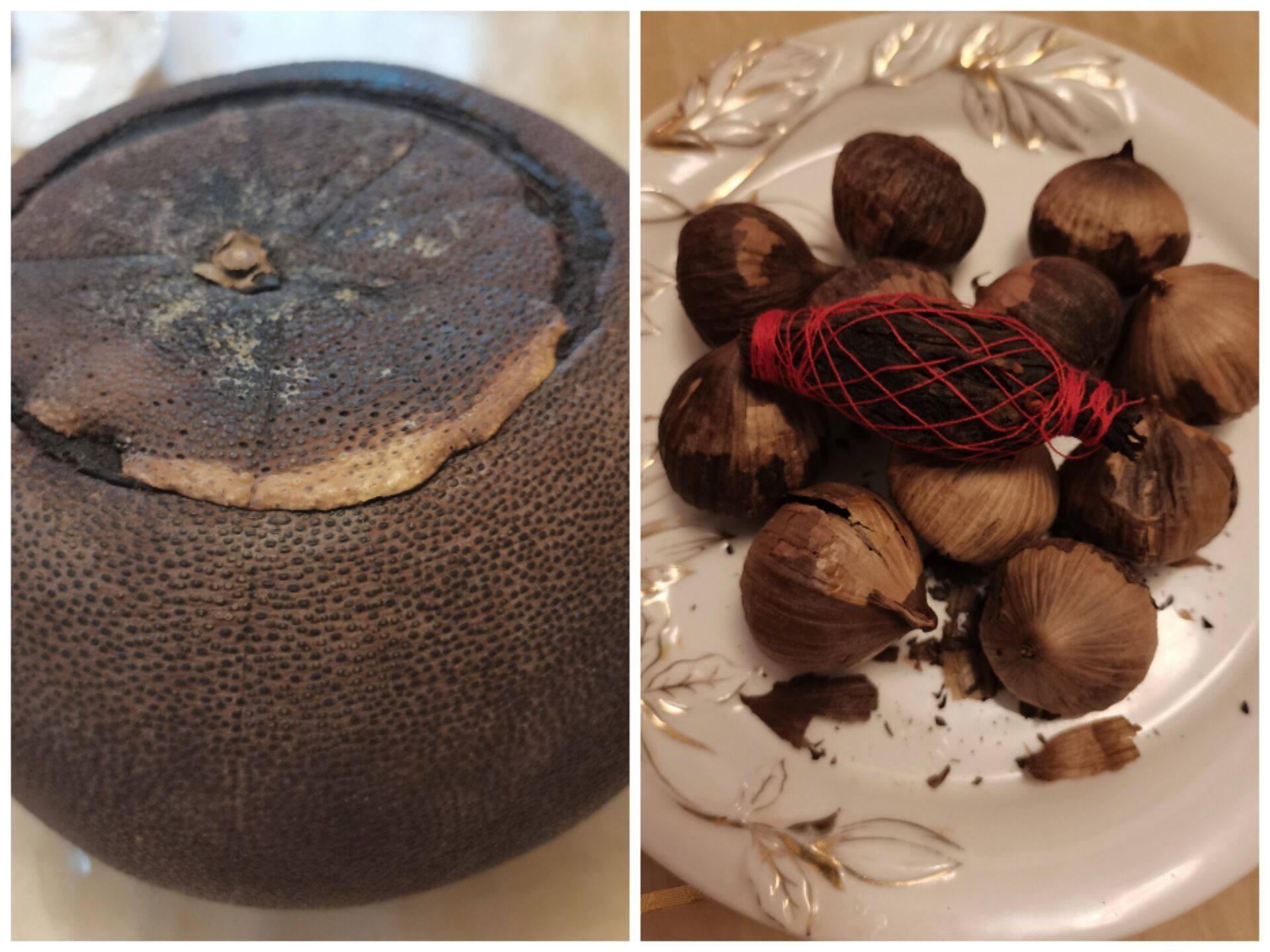 右:黑大蒜;左:柚子參