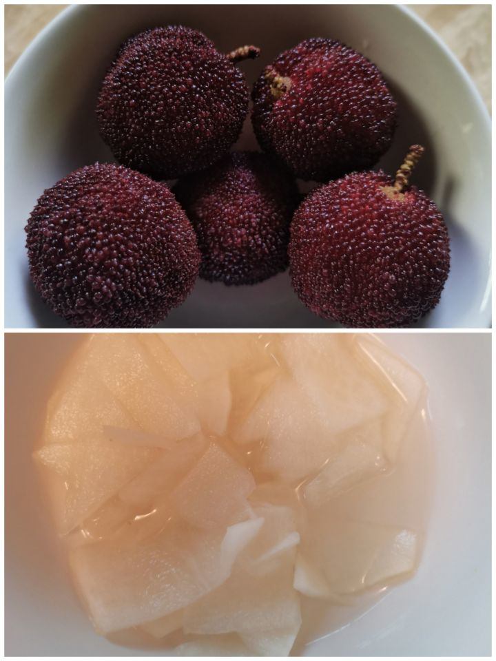 上:楊梅;下:糖醋蘿蔔