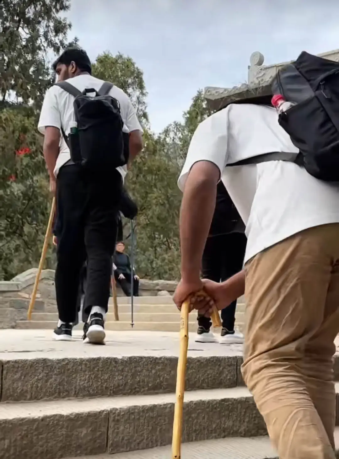 待他們爬上山頂,看着他們抖成篩糠的腿,中國人友好幫他們回憶:説好的輕鬆拿下?