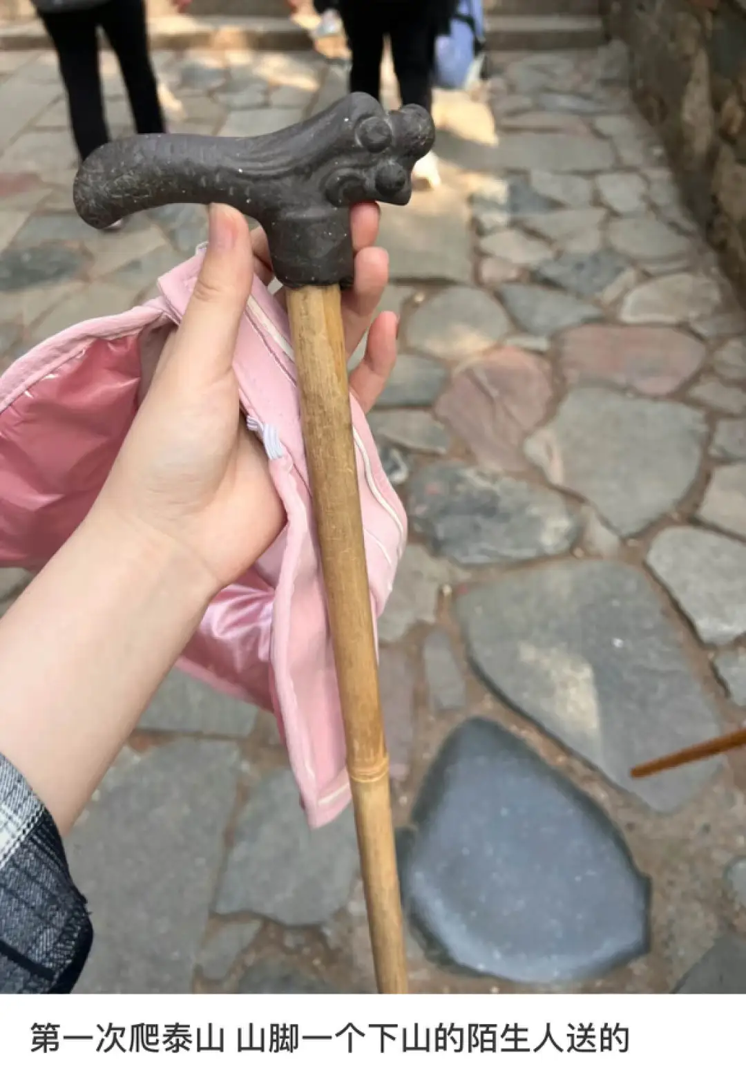 往小了看,很多去爬泰山的中國人,下山時都會隨手將自己的登山杖送給準備上山的人。