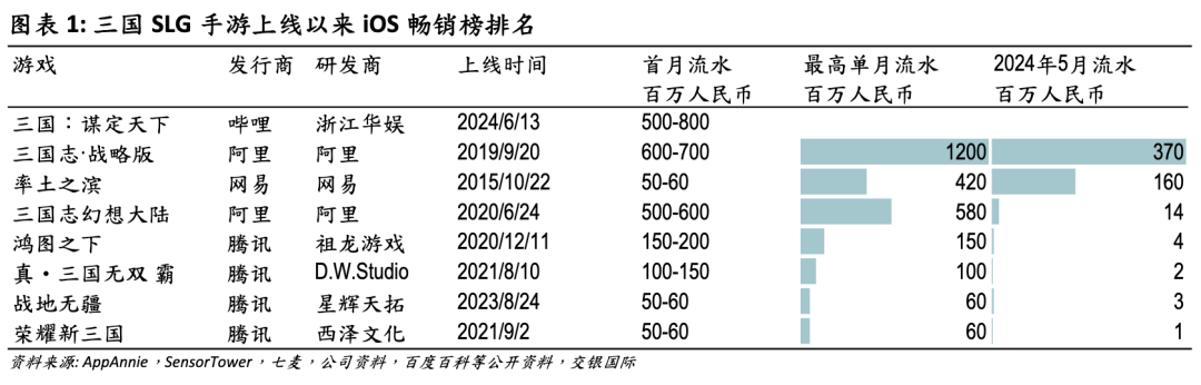 交銀國際預計三謀首月流水能有 5 至 8 億元,和首月流水或破 30 億的 DNF 手遊這種情懷拉滿的怪物沒法比,但不妨看看它的競品遊戲,三國志戰略版 5 月流水為 3.7 億,率土之濱則是 1.6 億。
