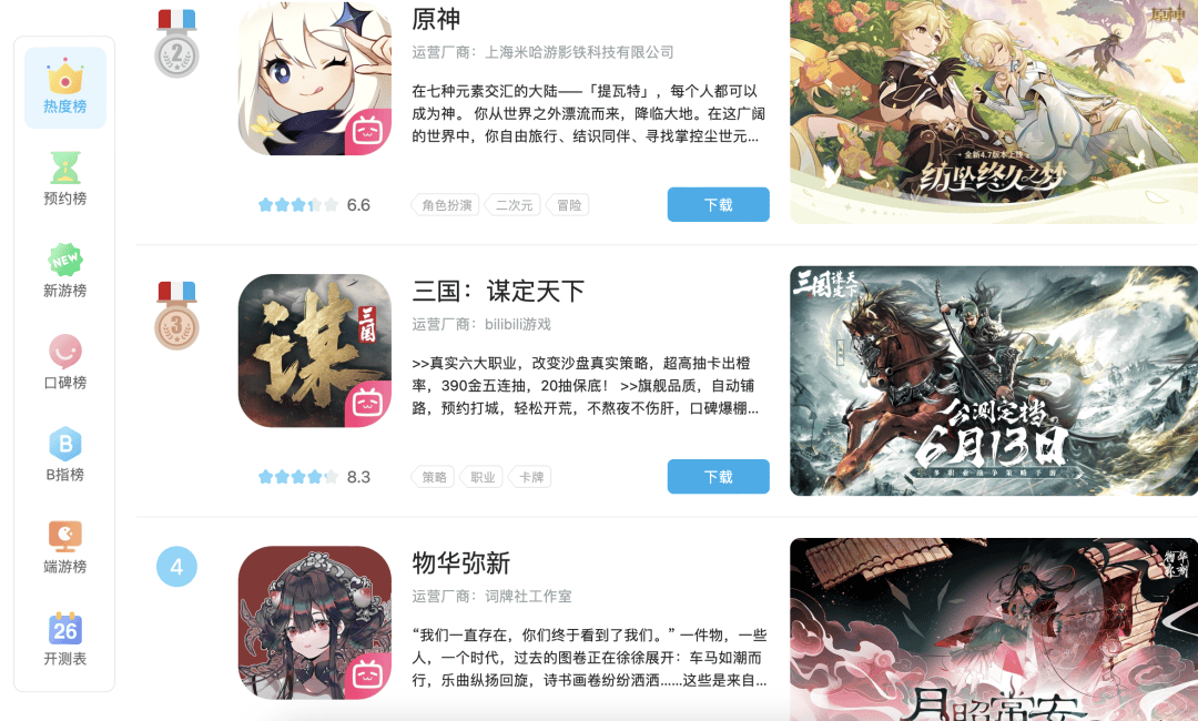 從 B 站的角度來分析,二遊固然是它的命脈,可三謀同樣重要,因為它有效填補了 B 站和非二次元遊戲間的空白。