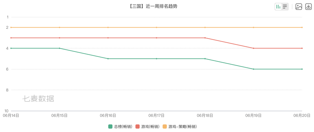 在策略遊戲暢銷榜,三謀的排名一直穩定在第二位——它已經夠牛了,因為策略暢銷榜第一是騰訊的印鈔機《 王者榮耀 》。
