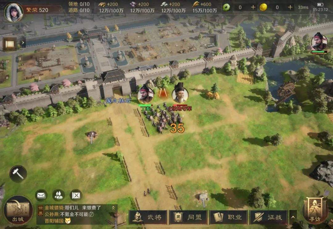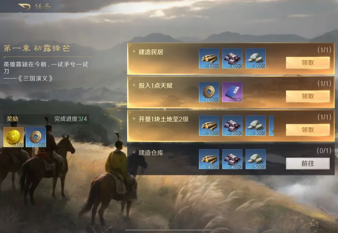 遊戲開荒期操作十分無腦,你要做的就是跟着指引,建造建築、開墾農田、尋訪武將、積累資源。這個沒啥值得介紹的,點點點就完事了。
