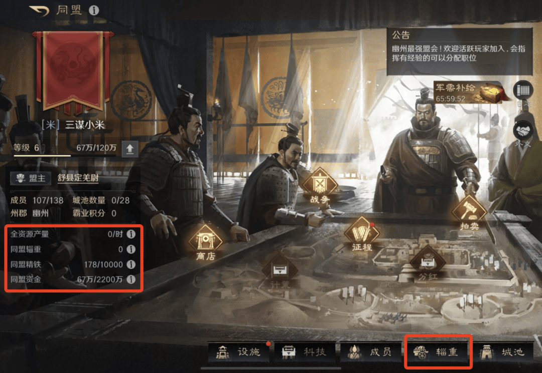像是輜重,本身是用來徵兵的一種重要資源,在戰鬥的時候,兵力的消耗必然會導致玩家對徵兵的需求,輜重的重要性不言而喻。