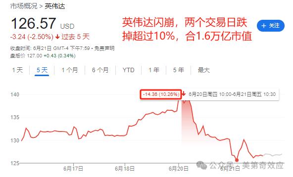 就在黃仁勳減持消息公佈之後,英偉達的股價發生劇烈波動,在兩個交易日中下跌超過10%。英偉達的市值蒸發超過1.6萬億RMB。相當於跌掉了一個茅台,或者兩個招商銀行。