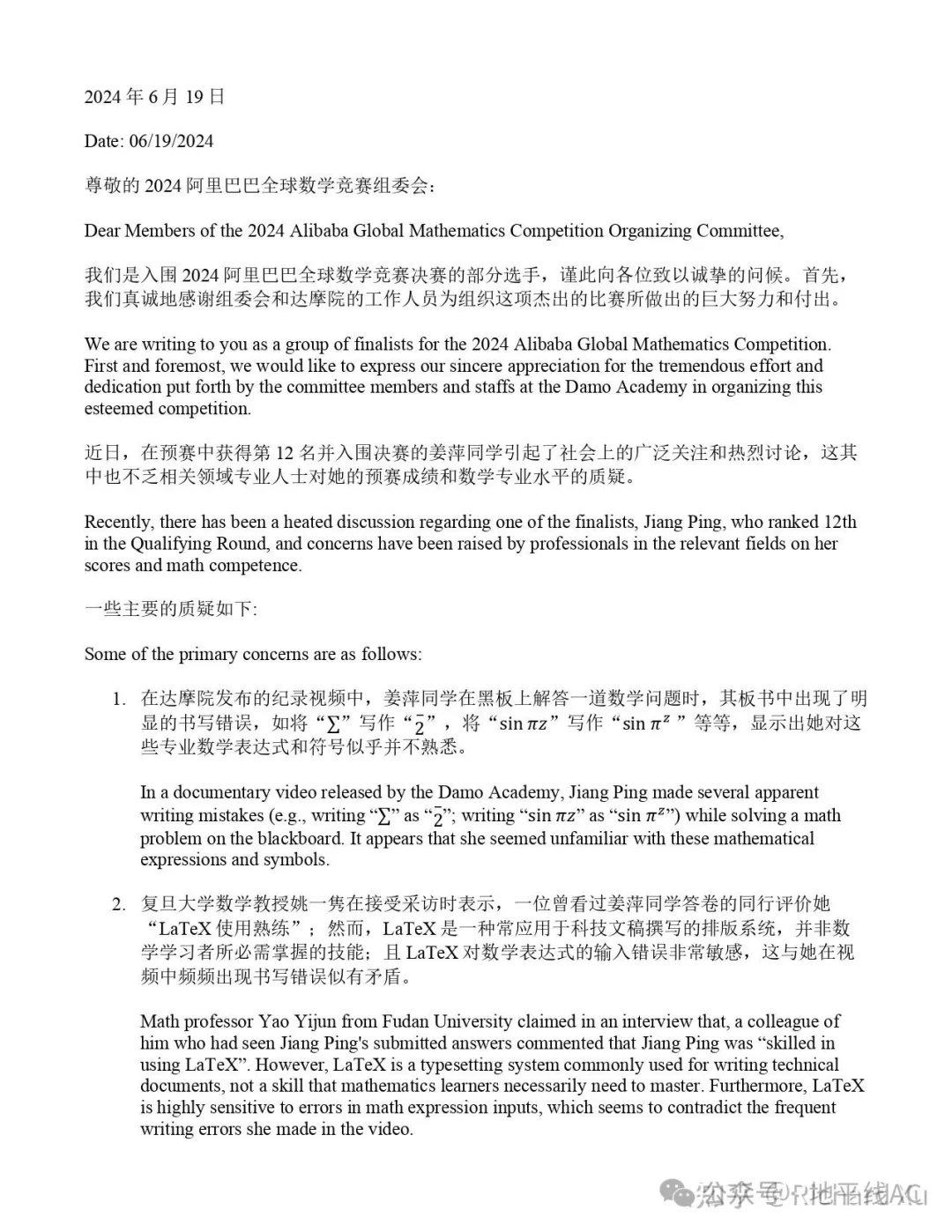 在昨天的阿里巴巴全球數學競賽決賽日之後,有39名參賽選手聯名向阿里達摩院發了一封公開信,要求其徹查姜萍成績事件。