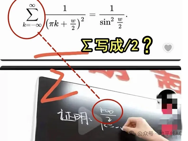 在短短的幾分鐘視頻內,類似的錯誤不止一處。還有把求和符號"∑“寫成/2等,伽馬函數符號寫成“T”等。