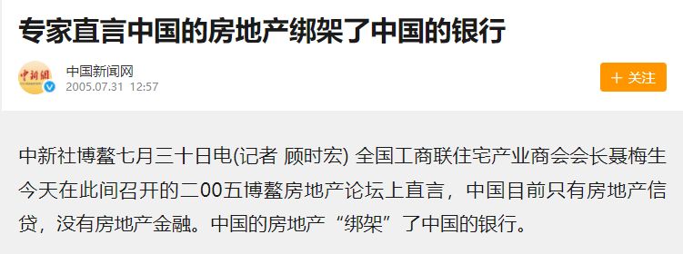 2005年博鰲房地產論壇上,全國工商聯住宅產業商會會長聶梅生曾大膽開麥: