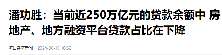 **前幾天的那場論壇上,潘行長也表示,**房地產、地方融資平台貸款沒有繼續增長,佔比還在下降。