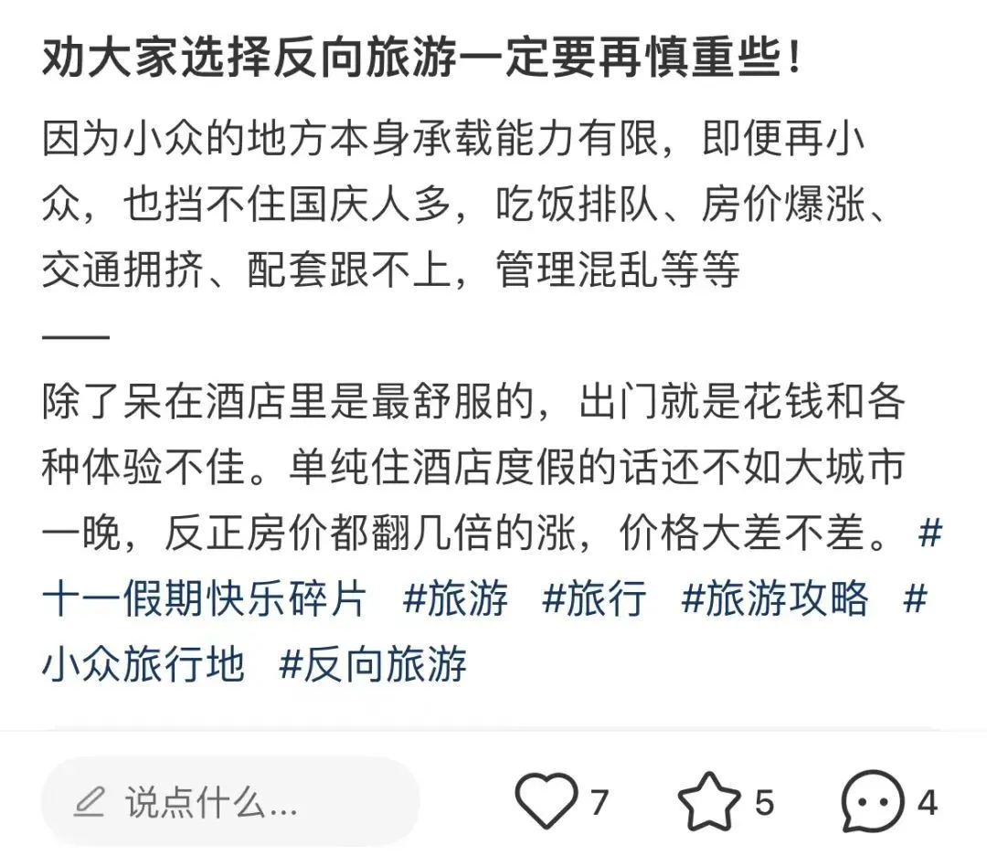 從花錢找罪受的“打卡集郵”式旅行,到追求鬆弛感和性價比的精神消費,年輕人對於旅行的需求慢慢迴歸到放鬆心情,調劑生活。