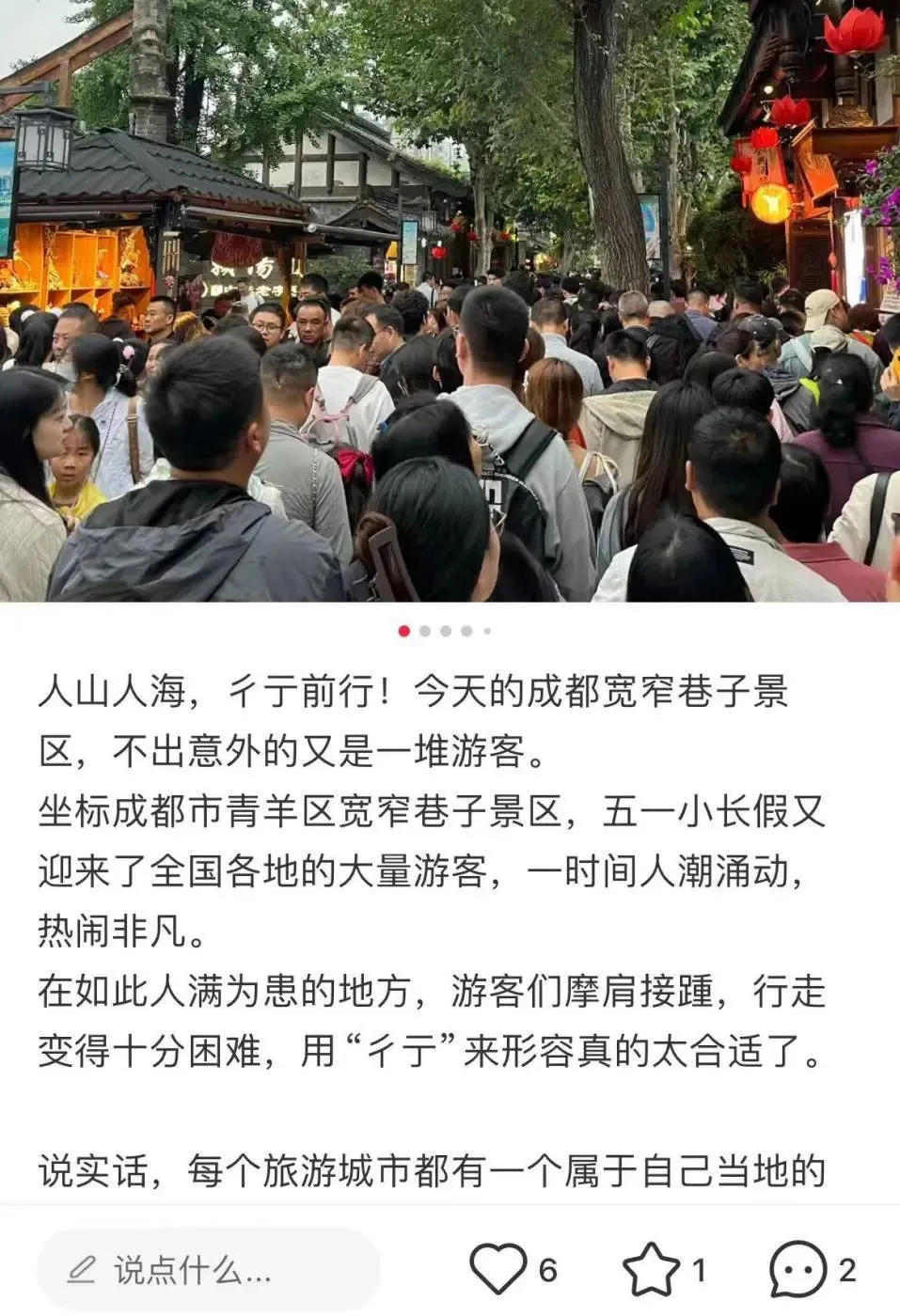 一到假期就被人“夾”着走的寬窄巷子。(圖/小紅書截圖)