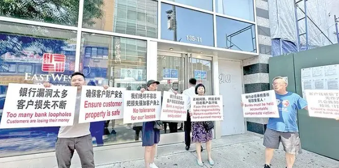 皇后區法拉盛社區守望互助隊隊長朱立創表示,三名受害者皆因存在銀行的錢遭盜轉、支票被盜領,向銀行索賠卻不得其果,其中一名受害者更遭盜領近4萬元;集會者呼籲銀行應重視客户權益、改善系統漏洞。