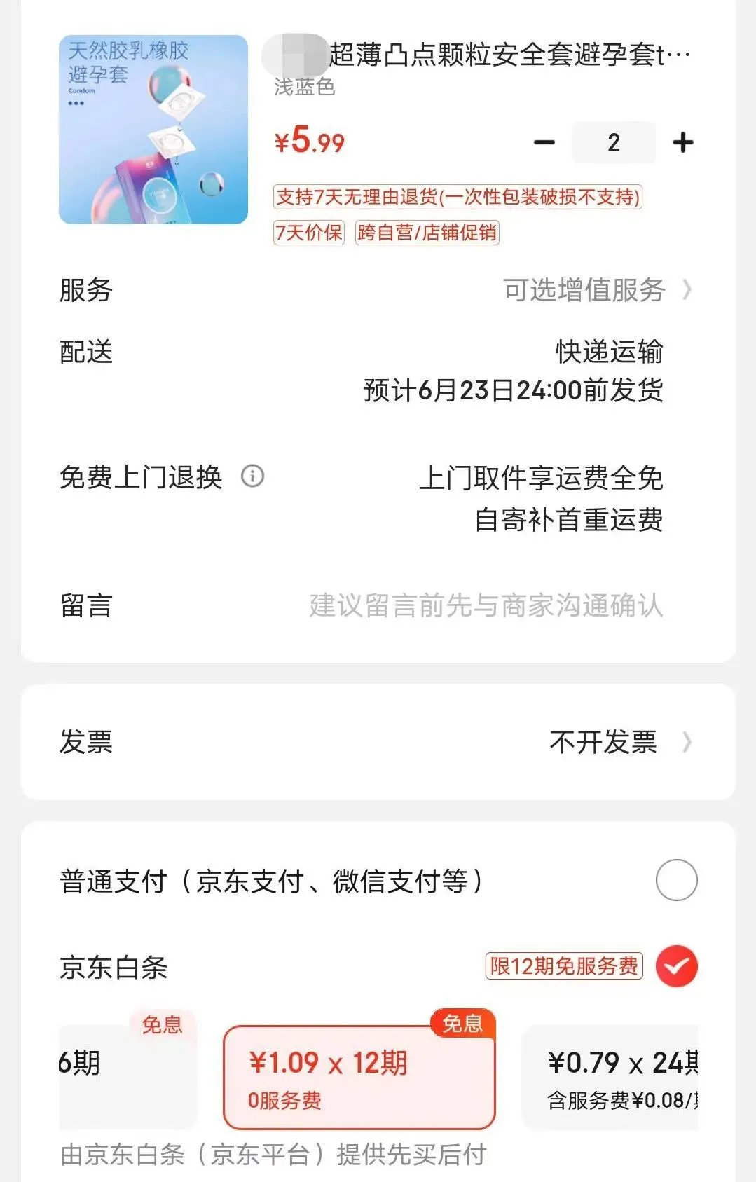 11.98的避孕套也可以分12期免息|圖源:京東付款界面截圖