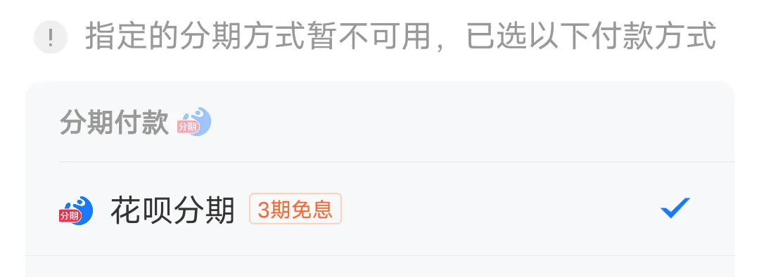 若用户未綁定指定的分期付款信用卡,平台會自動跳轉至其他付款方式|圖源:淘寶付款界面截圖