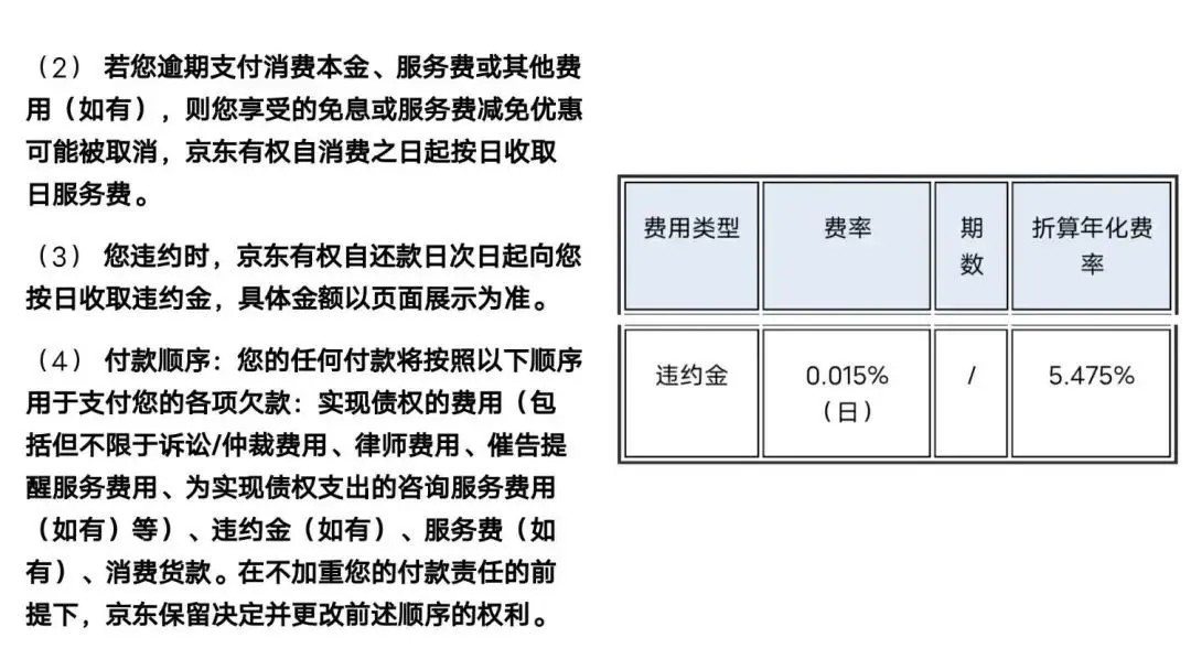 京東白條關於逾期還款的相關規定及違約金收取標準|圖源:京東金融
