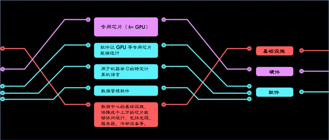圖形處理單元(GPU):GPU最初設計用於圖像處理和計算機圖形,擅長並行處理小任務,因此非常適合構建AI系統。相比中央處理器(CPU),GPU可以並行執行計算,犧牲一些精度以提高效率。GPU的並行性和內存架構對AI非常有利,某些GPU可以在單個芯片上存儲整個大型AI模型。GPU主要用於訓練階段,有時也用於推理。