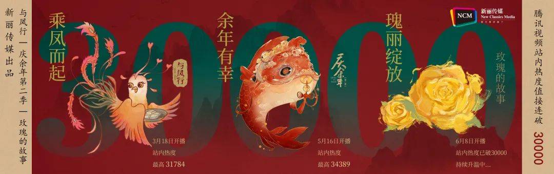 今年以來,先是《與鳳行》在騰訊視頻開播僅25小時,站內熱度就破了30000。緊接着,《慶餘年2》將這一時間縮短至57分鐘,並在開播後一路高開高走,市佔率一度超過55%,搶先佔據年度劇王的候選席位。如今,《玫瑰的故事》延續着劇集熱潮,成為今年上半年新麗出品的第三部熱度破30000的作品,如此高密度地產出爆款,很難説是偶然。