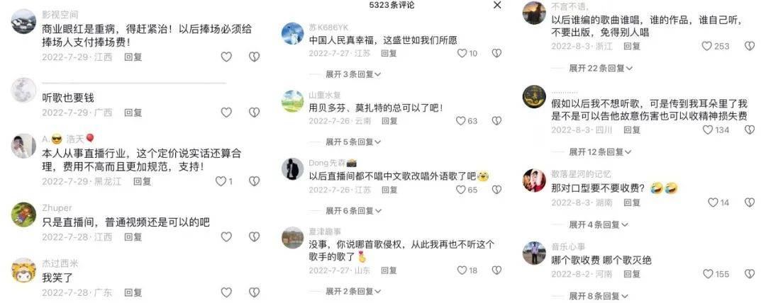 根據《直播環境下錄音製品“獲酬權”付酬機制研究課題報告》顯示,目前雖然有53.4%的主播知曉在直播中使用錄音製品需要向權利人支付版權費,但從付費意願來講,只有42.42%的主播比較願意向權利人支付版權費。當有音樂人涉及到維權官司時,還是會有網友將“版權付費”和“碰瓷”認知混淆。