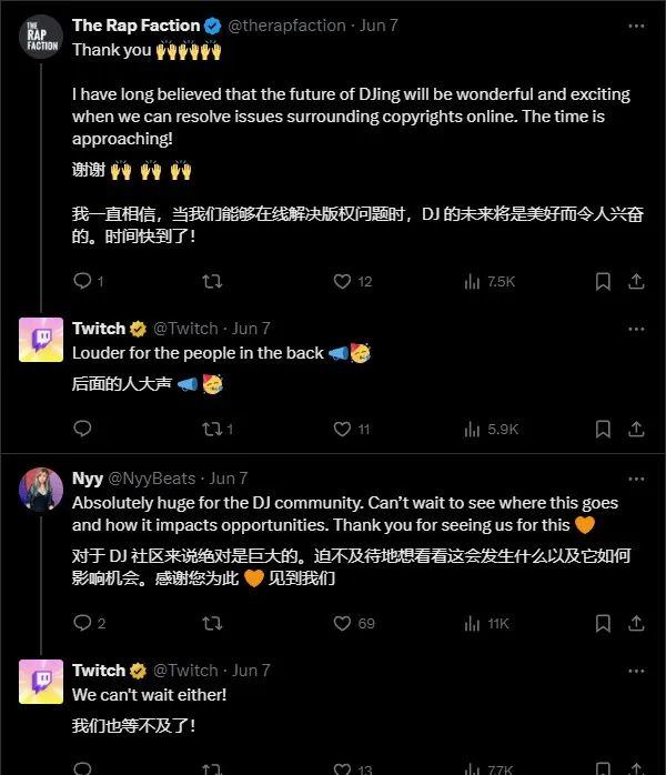 6月17日,海外DJ頻道916junglist創始人Billy Lane 在社交媒體發文稱:“Twitch是否會改變直播的遊戲規則,下個月見分曉。”