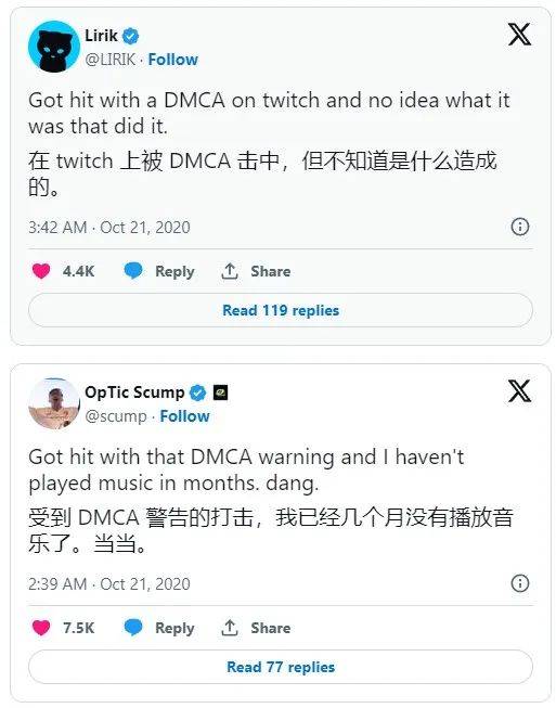 版權方這邊也不消停。2021年5月,Twitch在收到約1000起侵權索賠後,公開喊話對音樂版權方的行為感到失望,稱他們沒有與Twitch討論合理的解決方案,而是通過起訴和警告這種強硬的方式要求刪除內容。