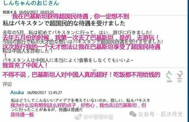 春上宏言回去後,2017年在網上寫了一篇《巴基斯坦旅行攻略》,專門指導日本人如何去冒充中國人,並得意洋洋地介紹了自己的“收穫”。