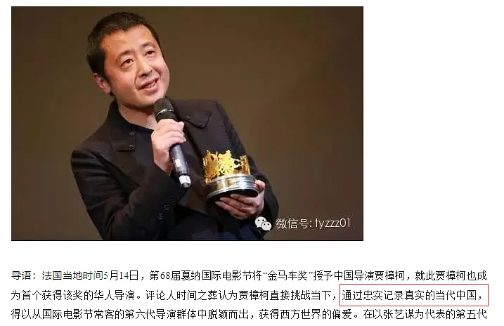 在今天,有着這種價值觀的電影極為常見。影視評論界雖然有聲音極為聰穎地指出,一些導演近年來的作品,巧妙的利用了城市的身份焦慮,定製了一些抹黑鄉村和基層的作品。但是,與那些直接把心機寫在劇情裏的商業導演不同,賈樟柯的處理方式,因為有着藝術大師的牌頭,更加隱蔽,危害也更大。