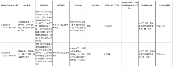 今年2月份和去年8月份,復星醫藥投資的南昌健源康復醫院有限公司被南昌醫保部門兩次處罰,處罰事由分別是因為該醫院存在重複收費、串換項目、分解收費、超醫保支付、超診療範圍、醫保管理不規範等違規現象,累計被罰近16萬元;