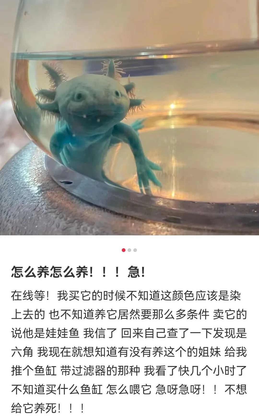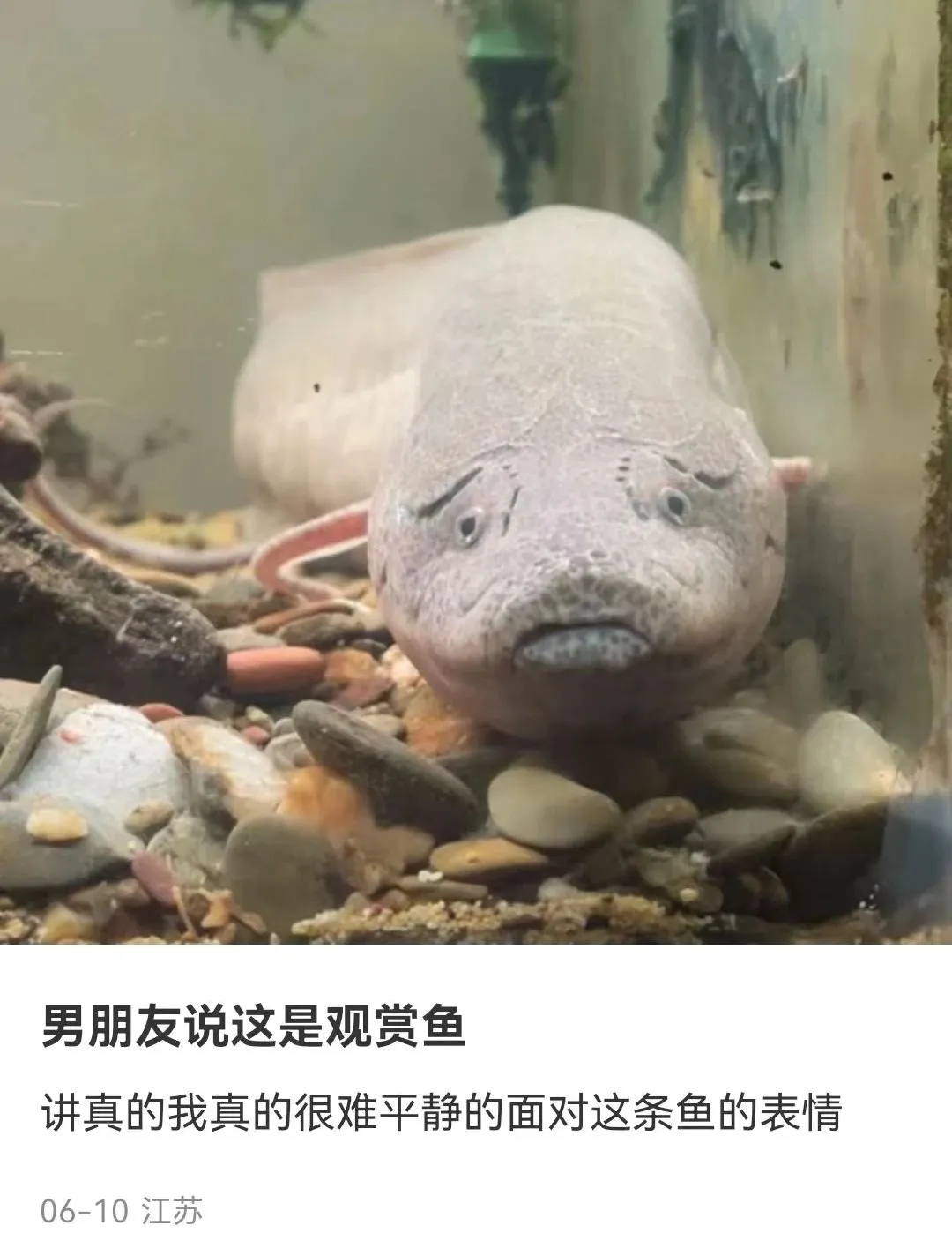 有人給自己的醜魚照了照鏡子,結果醜魚難過的快抑鬱了,哄了三天才開始吃東西。