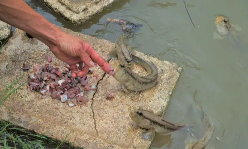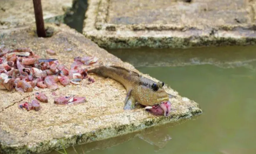 “去趕海時,碰到一堆灘塗魚圍着我,好奇的大眼睛一眨一眨,我把它們帶回去,從12只養到了60多隻,這幾天要開始擴建魚塘了。”
