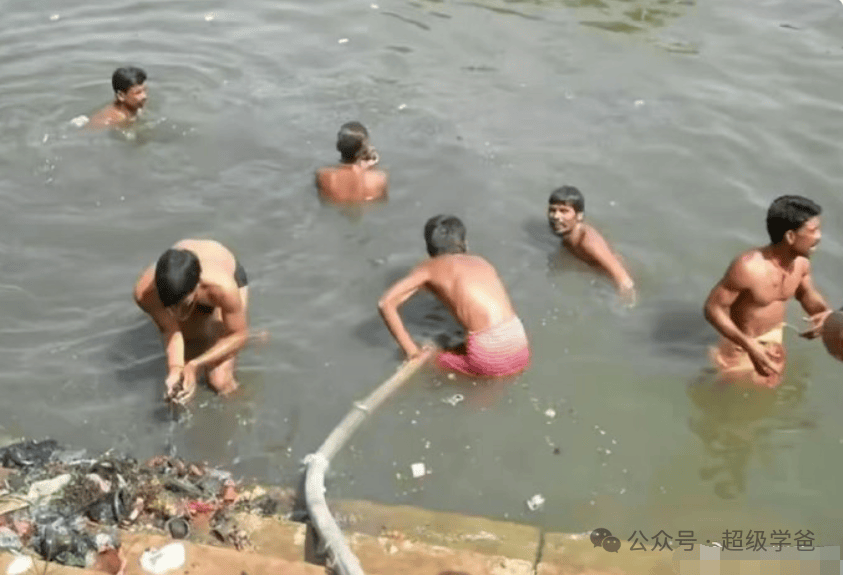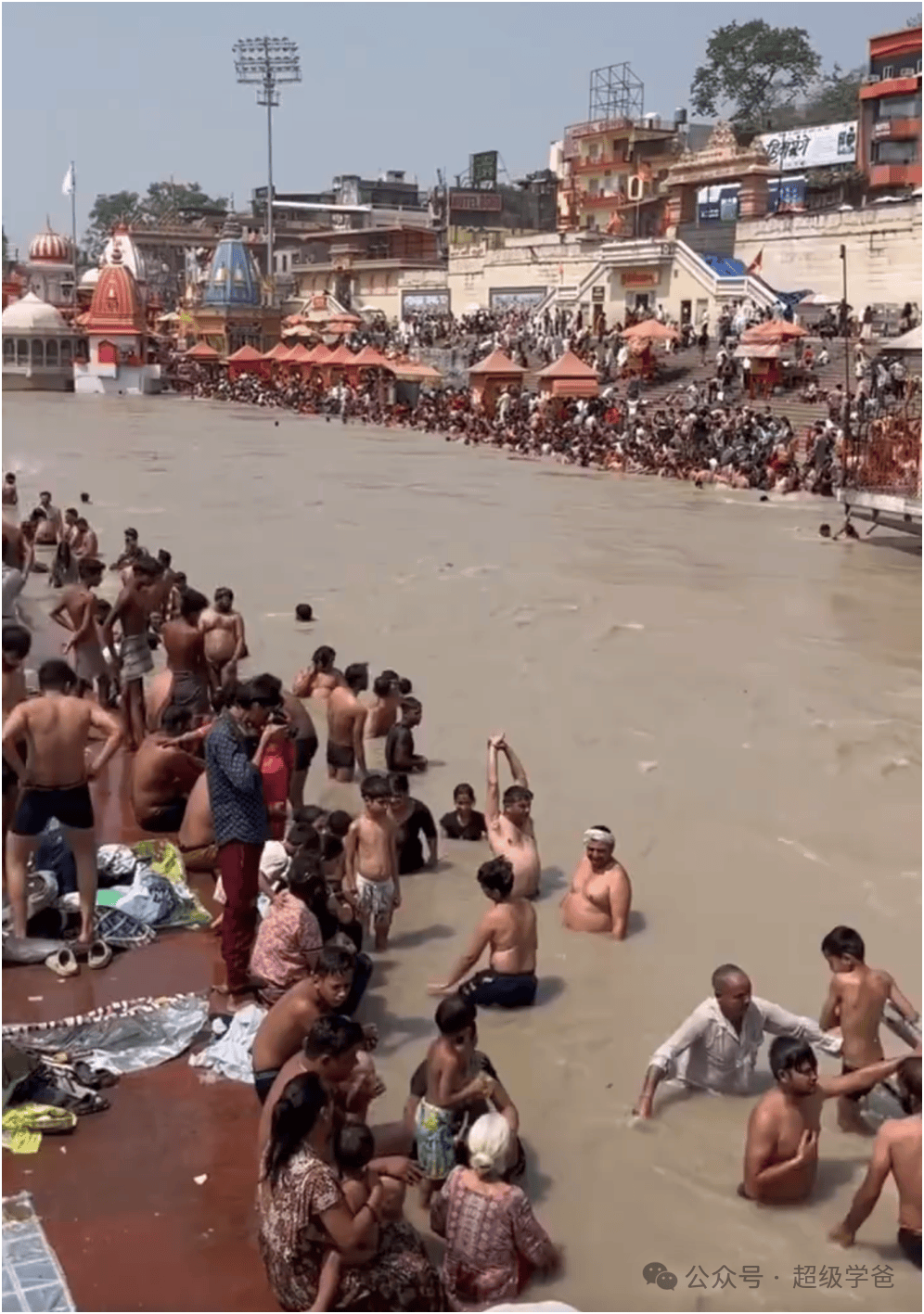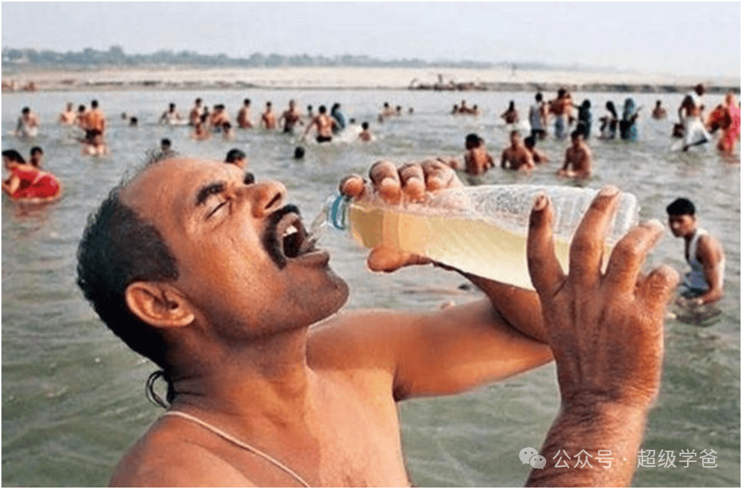 恆河邊的印度人是幸福的,因為他們可以泡在營養豐富的恆河水裏。在印度人的眼裏,恆河水是神聖的,也是包容的,包容了泥沙,包容了污染,包容了死屍,如今又包容了印度的男女老少。