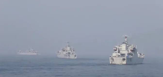 山東艦出動!第四艘055大驅出動!萬噸海警船現身!3艘坦克登陸艦加入!_風聞