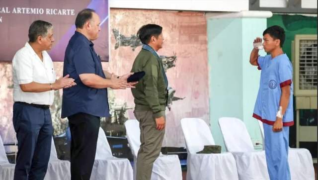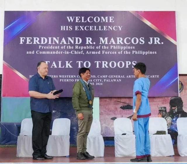 23日,菲總統小馬科斯專門跑到負責監管中國南海的菲西部司令部,給參與仁愛礁武裝補給的軍人演講,他高度讚揚了參與對抗的80名菲方人員,還當場給斷掉一根手指的軍人頒發了一枚獎章。