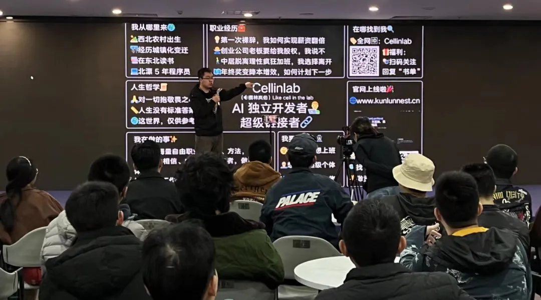 2023年11月,蘇菂又創辦了崑崙巢,希望繼續為有想法的年輕人提供交流場地。自“AI 革命”以來,一顆顆不甘心做一輩子打工人的心臟,再次蠢蠢欲動,大量的線下沙龍、黑松客活動變得愈發頻繁,一批熱血青年正再一次聚集。