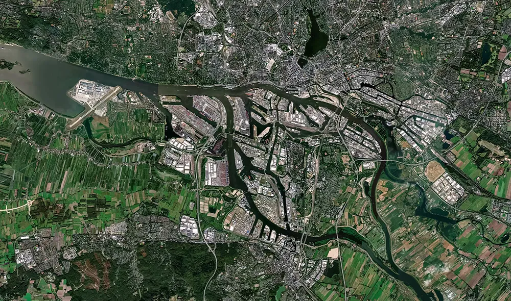 漢堡位於不來梅東北部,距離北海出海口約130km,寬闊的易北河聯通漢堡與北海,航道水深13—16米。正是在易北河的作用下,漢堡有300多條航線與世界各主要港口聯繫,雖不臨海勝似臨海。