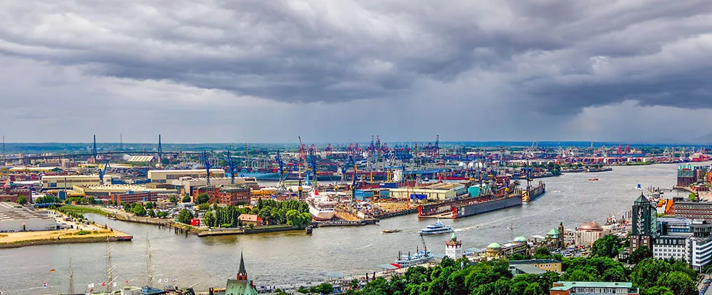 作為德國最大的綜合性港口,漢堡港2023年的海運量為1.143億噸。同時,作為易北河入海前的最後一個大城市,漢堡被譽為「德國通往世界的大門」,這也使得漢堡成為德國第一大外貿中心,其大多數工業也均和外貿有關。
