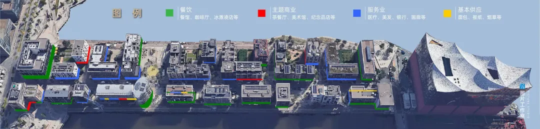 各板塊均富有各自的特色和主題,如濱水居住、特色辦公、文化創意等,且每個板塊均有標誌性建築,既是板塊形象代表,又是區域功能體現。