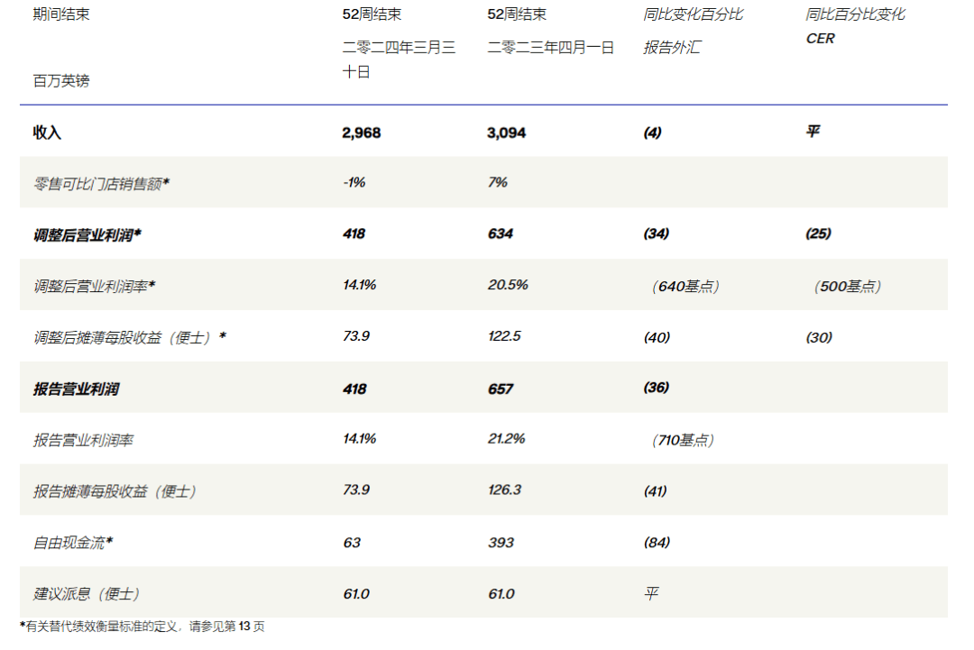 在天貓平台上頻頻打折促銷的巴寶莉不僅未能拉動業績增長,反而還在反噬業績。2023年Q4,其在中國大陸整體銷售額較2022年同期下降12%,整個2024財年巴寶莉營收下滑4%。調整後營業利潤環比下降25%。