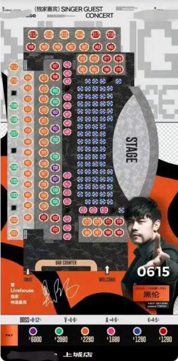 6月15日,“黑倫”在連鎖酒吧杭州上城店演出時低消最高達6000元。