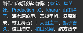 負責動畫製作的Production I.G和Khara同樣是《怪獸8號》製作委員會成員。兩家公司為此組建了大佬齊聚的主創團隊,包括西尾鐵也、大河內一樓、前田真宏等業界知名動畫人。結果自然是一份漂亮的答卷,動畫配樂、畫面、演出各方面表現出彩,戰鬥戲碼流暢帥氣,角色服設、怪獸造型也十分用心。