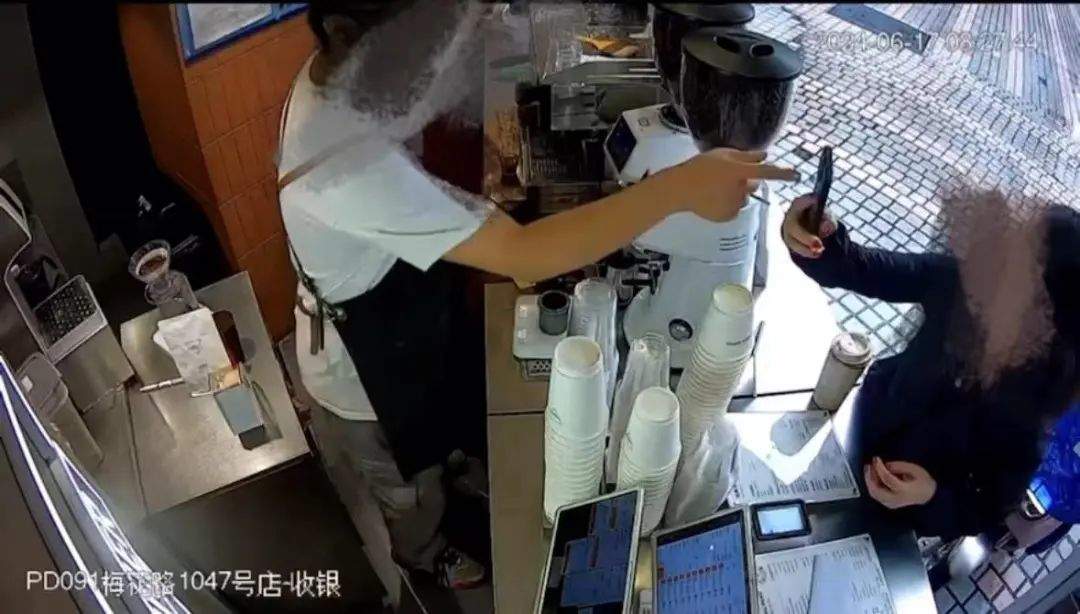 另一家Manner咖啡的女店員因為和顧客的爭吵把咖啡粉潑向了女顧客。