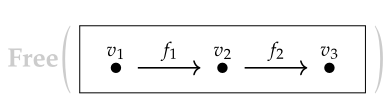 這裏的所謂Free指的是我們沒有添加任何新的約束條件,僅僅是從補足範疇論定義的需要出發向圖中補充了最少量的元素。而一個不Free的構造方式是向圖中引入約束條件:規定兩條連接同樣起點和鐘點的路徑是等價的。