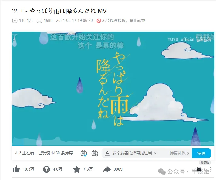 21年他們還在B站開設了賬號,並把《やっぱり雨は降るんだね》發了上來,目前這首出道曲在B站達成了140w的播放量,在姬蒐集素材的時候還有四個人在聽這首歌。