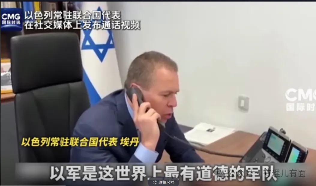 在視頻中,埃丹可謂“義正詞嚴”地對以色列進行辯護,光從他的表情和語氣來看,不知情的人還以為以色列才是受害者。