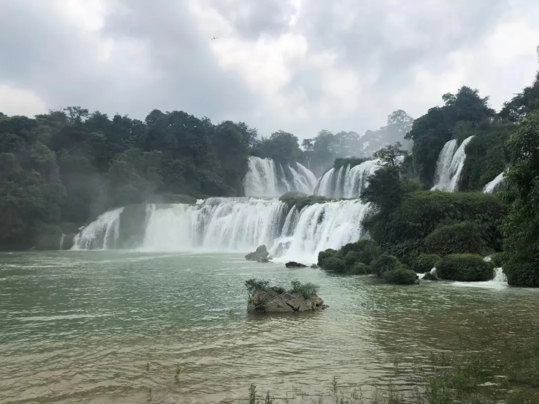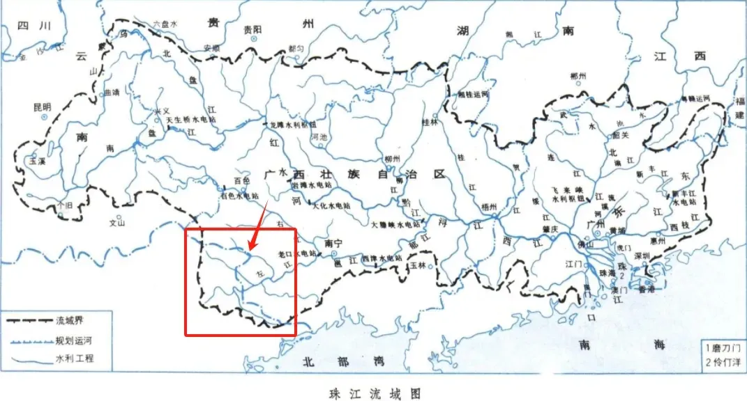 左江則往東北流,一些水流從越南流入國內,是我國**少見的境外流入的水。**左江上有一個著名的德天跨國瀑布,那條小河發源於我國,出境兜了一圈又流了回來。