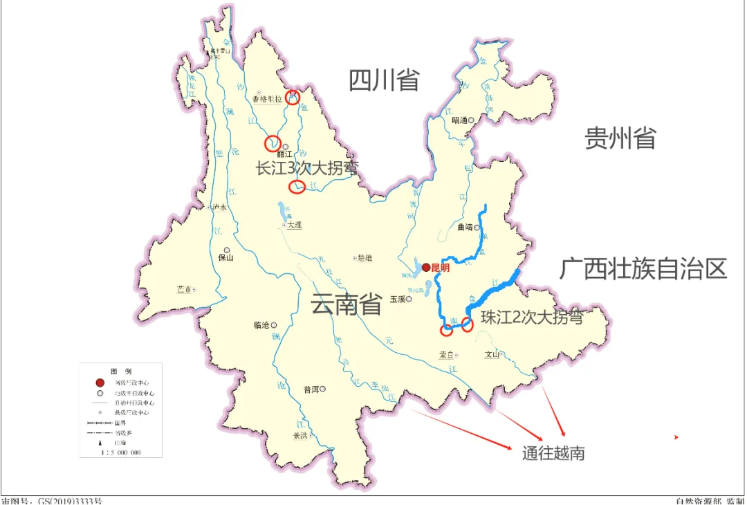 **開遠這個位置對南盤江來説非常重要!**前面我寫過,長江上游金沙江的180度大拐彎,衝破橫斷山的束縛。南盤江也有一個驚人的大拐彎,沒有順着地勢格局出走越南,而是拐回了國內,成為了我國第二大河流——珠江的上游,這個位置就在開遠市。