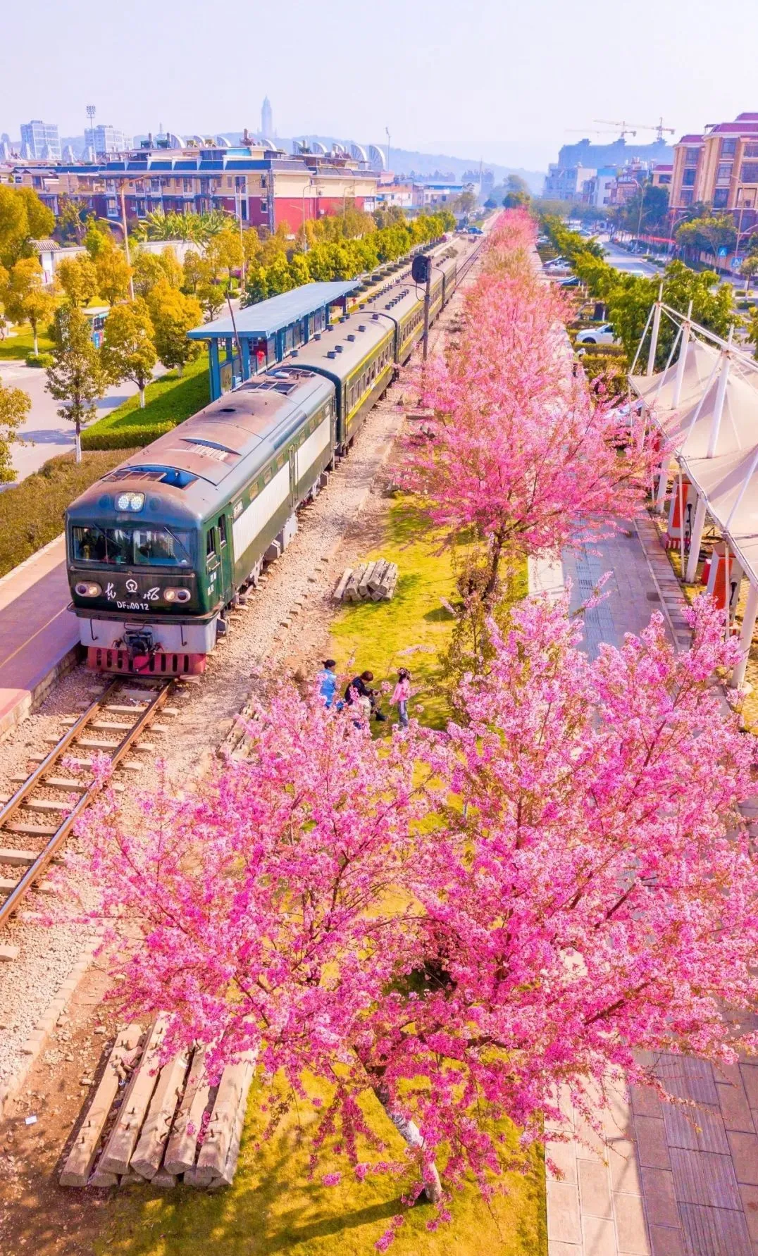 ▲當地有唯一的米軌鐵路——中越鐵路,小火車很有特色。圖是春季,自開遠市文旅局。