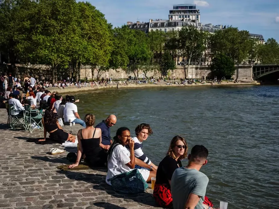 塞納河畔坐着的巴黎市民與遊客