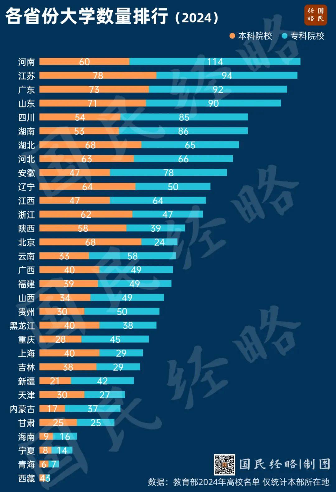 根據教育部發布的最新高校名單,河南174所高校中,只有60所本科院校,佔比僅為34%。